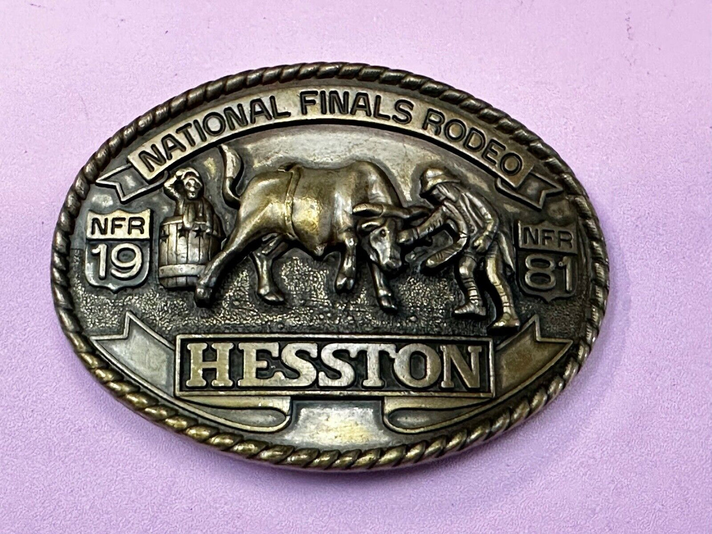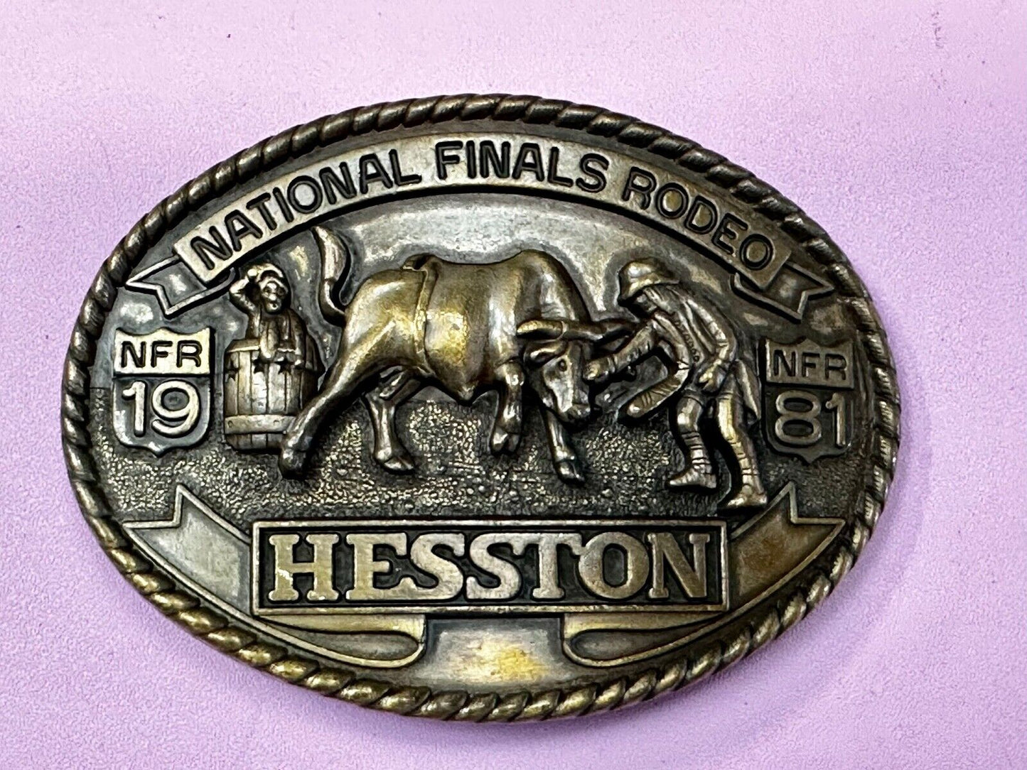 1981 NATINOAL FINALS RODEO NFR Commemorative Cowboys Art Belt Buckle