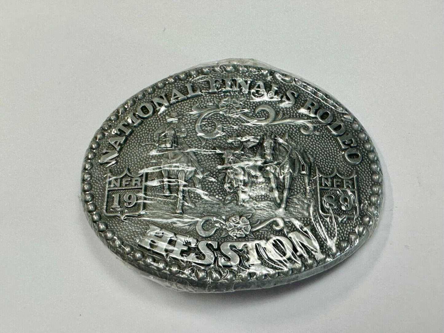 1989 Adult Size Hesston National Finals Rodeo Bull Riding Cowboys belt buckle