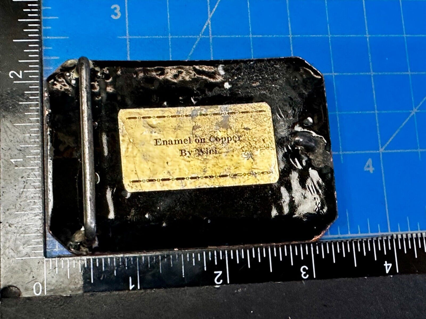 Artisan Hand Painted Abstract Flowers Enamel On Copper Belt Buckle By Wini